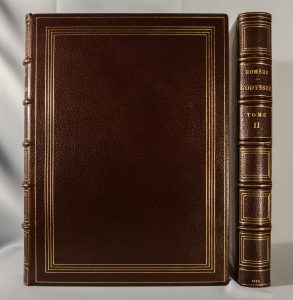 HOMÈRE - L'odyssée Ambroise Vollard éditeur. Paris. 1930. Illustrations d'Émile Bernard. 2 volumes in-folio reliés en plein maroquin chocolat, signée Septier, sous étui doublé bordé de maroquin. Quadruple filet doré sur les plats, filets...