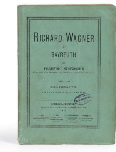 NIETZSCHE, Friedrich. Richard Wagner à Bayreuth. Traduit par Marie Baumgartner avec l’autorisation de l’auteur. Schloss-Chemnitz, Ernest Schmeitzner [Berlin, Imp. Carl Jahncke], 1877.