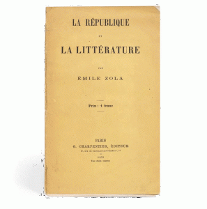 ZOLA, Émile. La République et la Littérature. Paris, G. Charpentier, 1879.