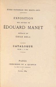 [ZOLA, Émile.] Exposition des oeuvres de Édouard Manet. Préface de Émile Zola. Catalogue. Paris, imprimerie de A. Quantin, janvier 1884.