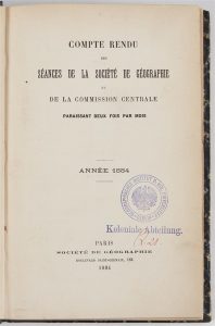 . COMPTE-RENDU DES SEANCES DE LA SOCIETE DE GEOGRAPHIE et de la Commission centrale. Paris, Société de Géographie, 1884.