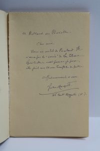 Envoi autographe signé de Jules Mouquet sur un feuillet de garde.