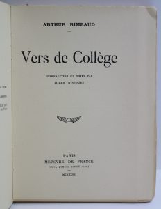 VERS DE COLLÈGE. Introduction et notes par Jules Mouquet. Paris, Mercure de France, 1932.