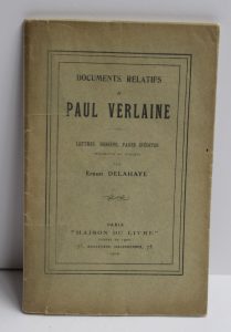 Ernest DELAHAYE. Documents relatifs à Paul Verlaine. Lettres, dessins, pages inédites. Paris, Maison du Livre, 1919.