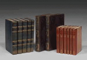 RELIURES UNIFORMES ATTRIBUÉES À CUZIN. Dos longs ornés et coin de maroquin rouge à grain long, non rognés, témoins conservés.