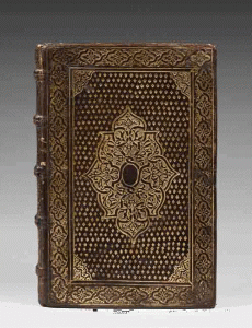 RELIURE DE L'ÉPOQUE. Veau, décor doré, grand fleuron central, semé de fleurs de lys, bordures, dos à nerfs doré et orné, tranches dorées