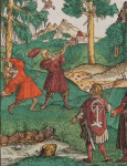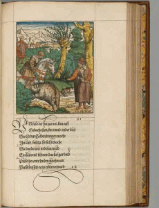 ILLUSTRATION : 118 gravures sur bois imprimées par Jost de Negker et Heinrich Kupferworm D'APRÈS DES DESSINS ATTRIBUÉS À HANS BURGKMAIR (13), HANS SCHAUFFELEIN (20, avec quelques planches portant son monogramme) et LEONHARD BECK (77). Toutes les gravures ont été REHAUSSÉES D'UN BRILLANT COLORIS À L'ÉPOQUE