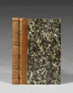 RELIURES VERS 1840. Dos de veau blond à nerfs ornés et dorés, plats de papier marbré