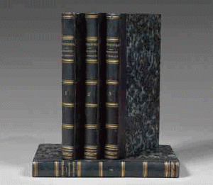 RELIURES UNIFORMES DE L'ÉPOQUE. Dos longs de veau bleu ornés, plats de papier bleu