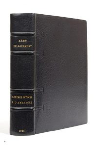 GOURMONT (Remy de). Lettres intimes à l'Amazone. Paris, La Centaine, 1926. Grand in-8, maroquin bleu nuit, double filet doré sur les coupes, cadre intérieur orné de multiples filets dorés, tête dorée, couvertures et dos, étui (Yseux, succ....
