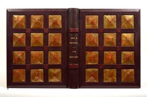 MONTHERLANT (Henry de). Les Bestiaires. S.l. [Paris], Les Bibliophiles franco-suisses, 1932. In-4, maroquin grenat à décor de caissons dorés et ocre répétés, dos lisse orné de faux nerfs de maroquin mosaïqué, tranches dorées sur témoins,...