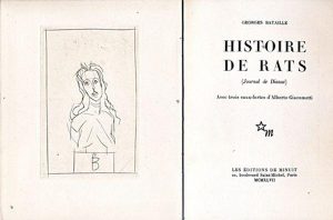 BATAILLE (Georges). Histoire de rats (Journal de Dianus). Paris, Éditions de Minuit, 1947. In-8, broché, couverture grise rempliée imprimée noir et blanc.