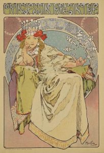 Édition originale illustrée en couverture et ornée d'un frontispice en couleurs par Alfons Mucha. # Pantomime grotesque d'après Ladislav Novàk. #