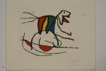 Édition originale de ce poème de Pablo Neruda, avec la traduction en regard par Jean Marcenac, illustrée de 2 eaux-fortes en couleurs signées par Joan Miró (18,5 x 23 cm). # Tirage à 175 exemplaires sur vélin de Rives, signés par le poète au feutre vert et l'artiste au crayon à la justification. # Légères taches au premier plat de couverture. # Cramer, n°157. #