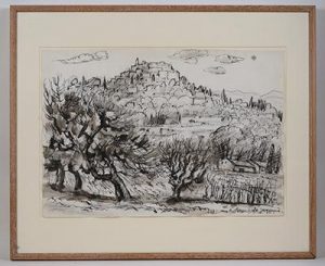 JACQUEMIN (André). Paysage de maquis. Un dessin original à l'encre signé. 1985. 45 x 65 cm. Sous cadre.