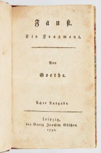GOETHE, Johann Wolfgang von. Faust. Ein Fragment. Ächte Ausgabe. Leipzig, Georg Joachim Göschen, 1790.