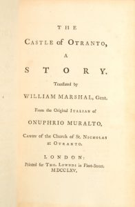 [WALPOLE, Horace.] The Castle of Otranto, a story. Translated by William Marshal, Gent. From the original Italian of Onuphrio Muralto, Canon of the Church of St. Nicholas of Otranto. Londres, Tho. Lownds, 1765.