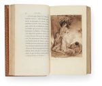 In-12 (168 x 99 mm) de (2) ff., 46 pp., 331 pp., 6 planches hors texte: maroquin rouge, dos à nerfs orné, triple filet doré encadrant les plats, coupes filetées or, dentelle intérieure, tranches dorées (Chambolle-Duru).