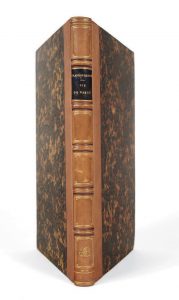 In-8 (212 x 132 mm) de (2) ff., VIII, 279 pp.: demi-veau blond, dos à nerfs orné de caissons de filets dorés, monogramme doré en pied, pièce de titre de maroquin vert, tranches mouchetées (Koehler).