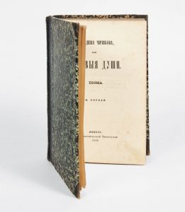 GOGOL, Nicolas Vassilievitch Похожденія Чичикова, или мертвыя Души. Поэма [Les Aventures de Tchitchikov ou les Ames mortes]. Moscou, Presses universitaires, 1842.