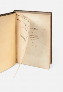 L’exemplaire a été placé dans une reliure des années 1850 : elle porte au dos “OEuvres de V. Hugo” et, plus bas, le titre. Il est incomplet de la page de titre et des pages 471-472 contenant les notes à la fin. Un autre feuillet de notes a été grossièrement réparé. Rousseurs.
