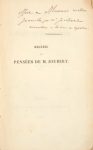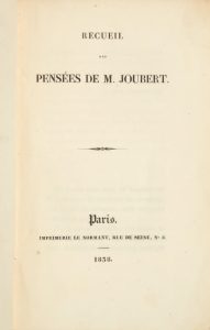 JOUBERT, Joseph. Recueil des pensées. Paris, Le Normant, 1838.