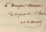 A Monsieur Henrion, De la part de l’auteur, Alf. de Musset., ce qui authentifie absolument l’oeuvre.”- Clouzot, 215 : “Très rare et
