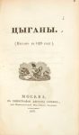 Цыганы [Tziganes [Tziganes]. Moscou, A. Semen, 1827. 46 pp.
