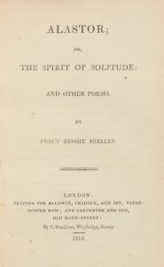 SHELLEY, Percy Bysshe. Alastor; or, the Spirit of Solitude: and other Poems. London, Baldwin, Cradock, and Joy, Carpenter and Son, 1816.