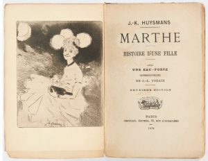 [FLAUBERT]. HUYSMANS, Joris-Karl. Marthe. Histoire d’une fille. Avec une eau-forte impressionniste de J.-L. Forain. Deuxième édition. Paris, Derveaux, 1879.