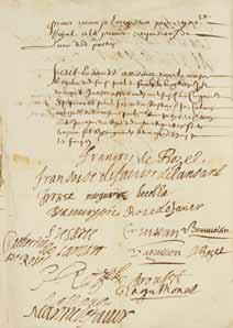 Ensemble de pactes de mariages et de testaments, un en original, les autres en copies collationnées, concernant des familles protestantes : François Félix ministre du Vigan et Françoise de Vabres fille de Jean de Vabres seigneur d’Arre, Avèze et Beaufort (1561) ; Jean-Claude de Levis sieur de Belesta et Jeanne de Beauvoir dame de La Bastide (1572) ; André de Béranger ministre à Sorèze et Rachel Dupuy veuve de Paul Pons (1627) ; François de Rosel, et Françoise de Favier (1650 ; original) ; Scipion du Puy sieur de Scalibert et Ysabeau de Bouffard Madiane veuve de Jean de Roux (1657) ; opposition à une publication de bans de la part d’un protestant qui acceptait de se convertir pour épouser une catholique (1770) ; testament de Jeanne Gausserande veuve de Pierre Nautonnier (1570).