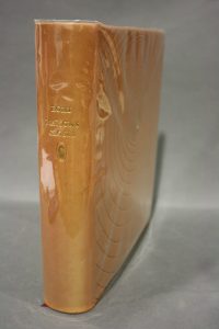 Dos lisse orné d'une palette dorée portant le titre doré, palette dorée reprise sur le premier plat dans un décor tourbillonnant d'un filet à froid, repris sur le second plat.