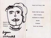Abboud. Lithographie originale, pour la carte de vœux, 1963, de la galerie Raymonde Cazenave. Joints Agam. Deux dessins originaux, signés, au feutre sur le menu du dîner organisé par le Centre Pompidou le 29 avril 1980. Benn. Lithographie originale.