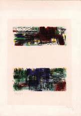 Bazaine. Hollande Iv. Lithographie couleurs. Numérotée 45/150, signée et datée 57. 28x38 cm. Jointe Bazaine. Hollande Ii. Lithographie couleurs. Numérotée 52/150, signée et datée 57. 26,5x38 cm. Les deux lithographies.