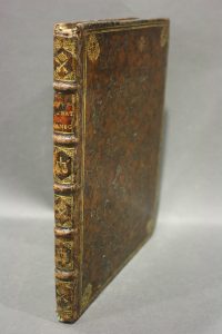 Fer héraldique doré dans les angles, dos à nerfs orné de motifs similaires répétés.