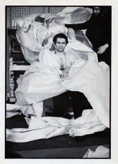 Hendrik Bruers. Photographies en noir d'une performance de Ben. Tirage argentique postérieur, deux de format 13x18, l'autre de format 20x30 cm. Les trois photos.