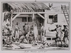 •La seconde offre des scènes de Paris, dont des petits métiers, puis des batailles ; elle se compose de 26 planches légendées, dont la première, le portrait de l'auteur, a été placée au début du volume.