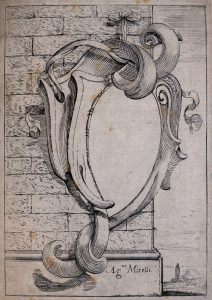 Belle suite de cartouches ornementaux, éléments décoratifs d'architecture, gravés sur cuivre d'après les dessins Agostino Mitelli, par Frans van den Wyngaerde (1614-1679), qui vécut et travailla à Anvers où il fut membre de la Guilde de saint Luc.
