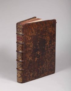 In-4, XLII-358 p., [3] f. (privil., table), frontispice, vignettes gravées sur cuivre dans le texte et culs-de-lampe gravé sur bois, reliure de l'époque basane brune mouchetée, dos à 5 nerfs, caissons ornés, pièce de titre maroquin grenat, roulette dorée aux coupes, tranches rouges (coins émoussés, mors frottés et fendus en tête sur 5 cm, plats épid., salissures au titre et qq. marges, brunissures éparses modérées ; vignette de la Paris16 imprimée à l'envers).