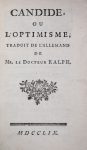 [VOLTAIRE]. Candide, ou l'optimisme, traduit de l'allemand par Mr. le Docteur Ralph. S.l., s.n., 1759.