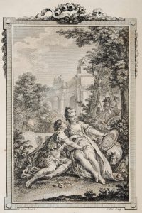 L'illustration entièrement gravée d'après les compositions de Gravelot se compose de deux frontispices avec les portraits du Tasse et de Gravelot, deux titres gravés avec vignettes, une dédicace avec vignette, 20 planches, 23 culs-de-lampe, 20 vignettes en-tête avec portraits.