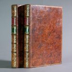 2 vol. in-4, [3] f., 331p. + [2] f., 340 p., reliure de l'époque plein veau écaille, dos à 4 nerfs, pièces de titre et de tomaison maroquin rouge et vert, caissons ornés aux petits fers avec fleurons à l'oiseau, triple filet et fleurons angulaires dorés aux plats, double filet aux coupes, roulettes intérieures, tranches dorées [Derôme le jeune] (coiffes, mors et coins restaurés, qq. brunissures).