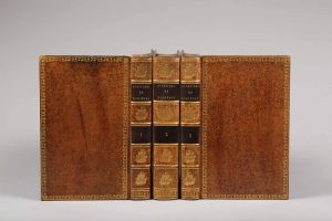 3 volumes in-8, reliure veau écaille, dos à 5 nerfs, grand navire en fleuron doré répété, pièce de titre et de tomaison basane noire, double filet et roulette florale bordant les plats, roulette aux coupes et bords des contreplats, tranches dorées [Simier] (petites réparations en pied de 2 mors ; petit accroc en marge du portrait, petites piqûres de vers en marge de certaines pages de texte, antérieures à la reliure ; rousseurs sur certaines planches).