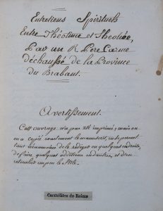 [MANUSCRIT]. [Carmélites]. Entretiens spirituels entre Théotime et Théonée, par un R. Père Carme déchaussé de la province du Brabant. Manuscrit du XVIIIe siècle.