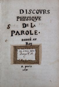 [MANUSCRIT]. [PHILOSOPHIE]. CORDEMOY (Géraud de). Discours physique de la parole. À Paris, 1670. [Suivi de]. •Entretiens sur la philosophie par Mr Rohault. 2 parties, 1670-1671.