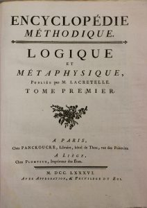 LACRETELLE (Pierre-Louis). Encyclopédie méthodique. Logique et métaphysique. [Et morale]. P., Panckoucke, 1786-1791.