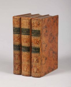 3 volumes in-8, reliure de l'époque veau fauve moucheté, dos lisse et orné aux petits fers, pièces de titre et de tomaison basane vert foncé, double filet doré aux plats, filet et aux coupes et roulette aux bords des contreplats, tranches dorées (restaurations, menus défauts aux plats, qq. lég. brunissures).