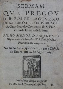 Rare sermon prononcé lors d'un autodafé célébré à Evora. par le père franciscain Acursio de Sao Pedro