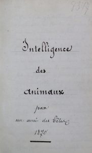 [MANUSCRIT]. [ANIMAUX]. Intelligence des animaux, par un ami des bêtes. 1870. [Copie, 1892].