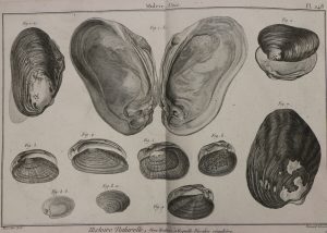 Importante et peu commune tête de série (tome I du texte, 393 planches sur 488), concernant les invertébrés, en particulier les coquillages représentés sur de très nombreuses planches.